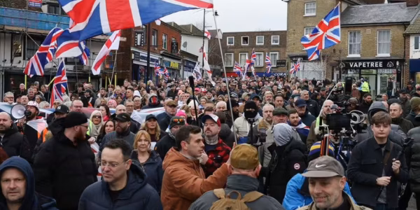 ‘We will NOT stop!’ Thousands of protesters descend on Crowborough as furious locals condemn ‘messy situation’