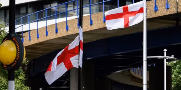 St George’s flags ripped down in another English city and replaced with 3-word messages
