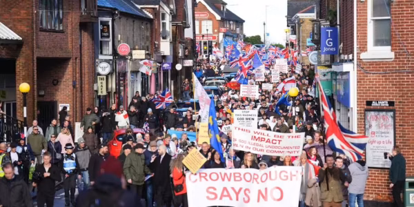 Anti-migrant protesters in Crowborough, East Sussex, have been urged to stop paying council tax if asylum seekers are housed in a local military barracks, sparking outrage and fears of community tension. Angry campaigners marched through the town’s streets on Sunday, carrying signs and…