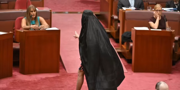 Fury as politician branded ‘racist’ for wearing burqa to parliament in ban bid