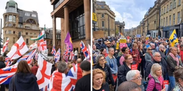 Newcastle protest: 100 anti-migrant protesters drowned out by counter march