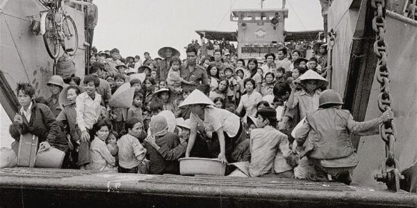 Hình chụp hôm 24/3/1975, tàu Hải quân Việt Nam Cộng Hoà chở dân di tản từ Huế cập bến Đà Nẵng. (Photo by Bettmann/CORBIS) {Việt Báo giới thiệu: Những ngày này 44 năm trước, Việt Nam Cộng Hoà bị đồng…