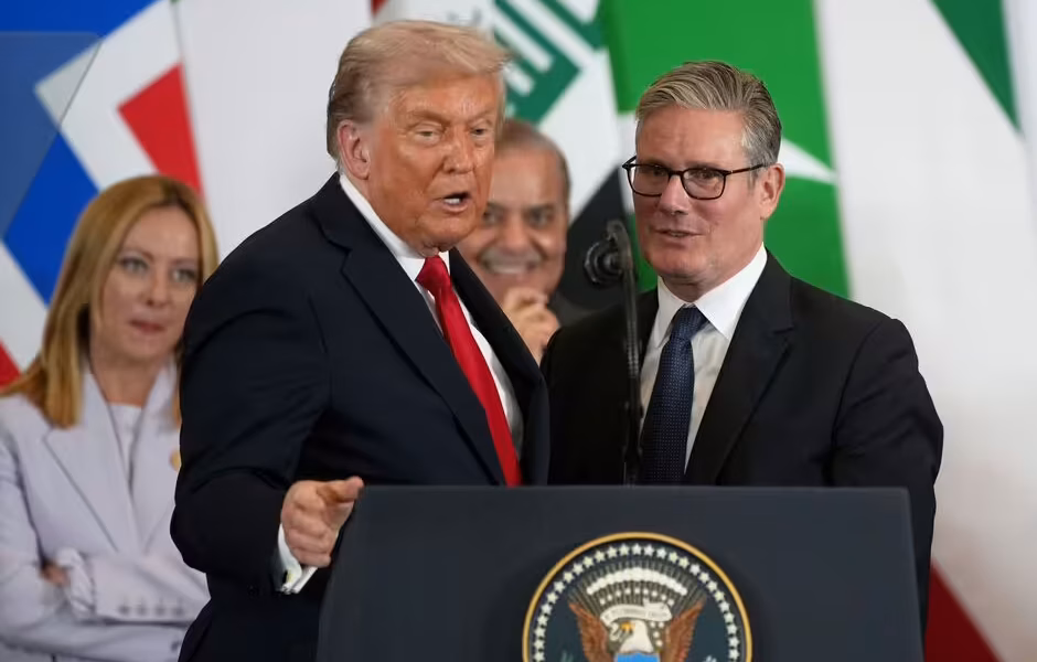 The excrutiating moment came after Mr Trump reeled off a list of the countries who played a role in neogitating a ceasefire in the long-running conflict, ending with the UK, which he said was among the nations who had travelled to Egypt at a “20-minute notice”.