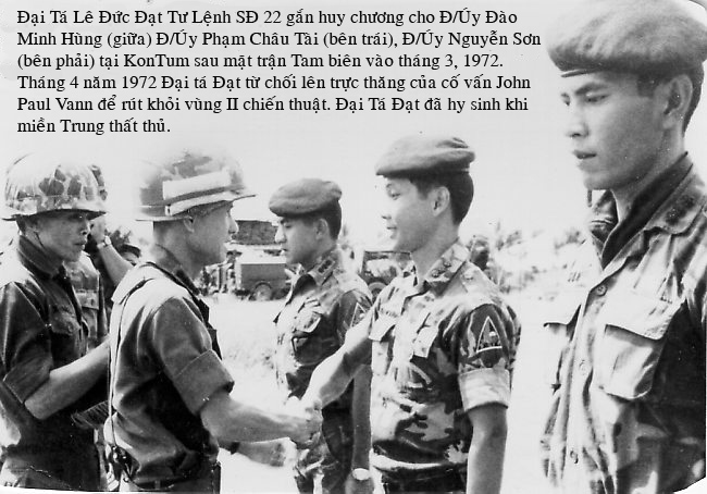 – Thưa đại tướng, chúng tôi được lệnh là cố thủ tại đây, và từ sáng tới giờ chúng tôi đã ngăn chặn được các mũi tấn công của địch. Chúng tôi đã bắn cháy 6 chiếc tăng của CS trong khu vực này, mà không hề hấn gì cả. Thưa đại tướng, chúng ta không thể đầu hàng được. Công lao của Quân Lực VNCH trong bao nhiêu năm sẽ…