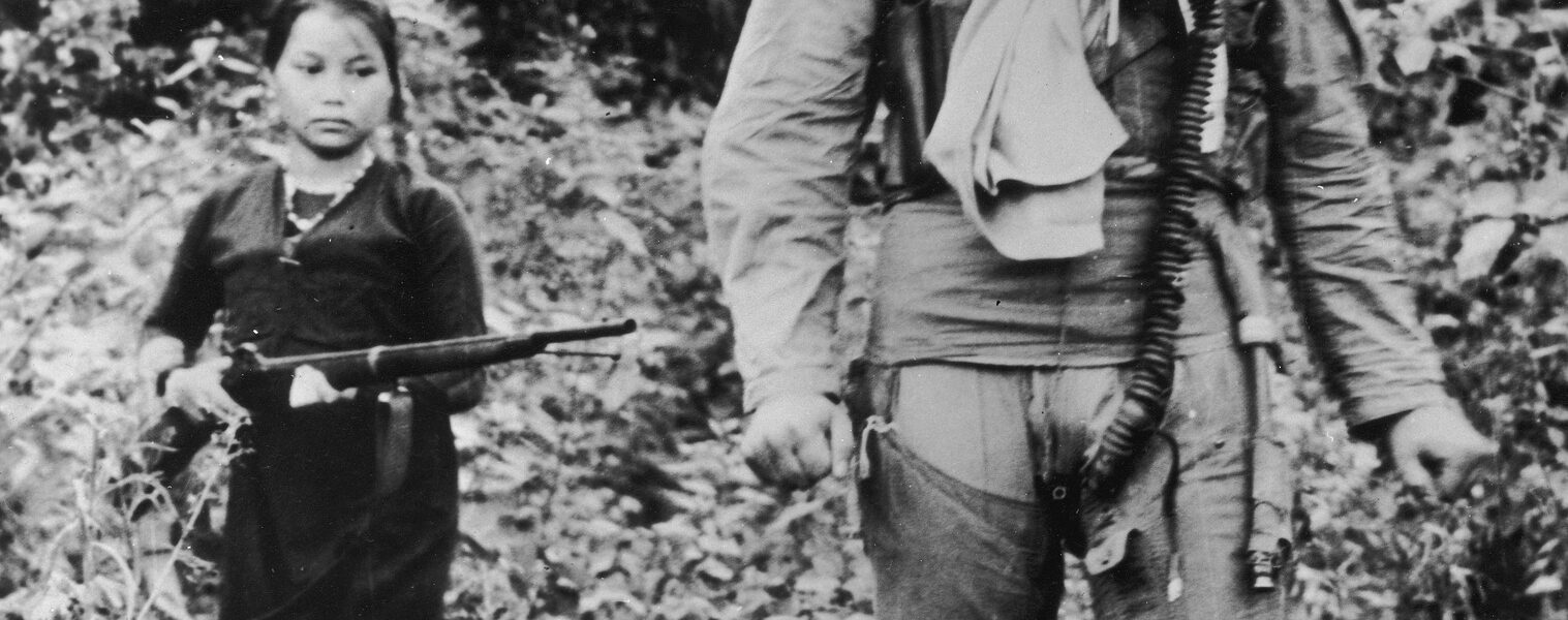 Bức ảnh này có tựa đề “Bắt tù binh” (Taken prisoner), còn có tên khác là “Cô gái trẻ bắt tù binh” (Young Captor) và lời chú thích: “Trung uý Gerald Santo Venanzi bị một cô gái Việt Nam áp giải. Venanzi là phi công lái máy bay bị bắn rơi trên miền Bắc Việt Nam ngày 17 tháng 9 năm 1967 và ngồi tù hơn 6 năm”. Đây cũng là một bức ảnh nổi tiếng trong hồ sơ lưu trữ “Hulton Archive/Getty Images” – bộ sưu tập ảnh về lịch sử Hoa Kỳ qua các thời kì từ đầu thế kỉ 19 sang thế kỉ 20. Chỉ tiếc là chúng ta chưa biết được cô du kích trong ảnh là ai.