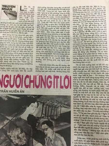 Thỏa mãn được điều này rồi, nhưng nét chữ của ai mà sao quen quá, cứ còn là một thắc mắc. Tôi nhắm mắt nhớ lại nét chữ những bạn gái một thời. Những trang thư của họ lần lượt hiện lên. Một Võ Thị Mỹ Dung luôn tươi trẻ, tinh nghịch, dân Marie Cuirie, xuất hiện trước hết, nhưng nét chữ Dung tròn trịa hơn, con trai hơn và niên khóa này Dung chưa học đến Đệ Tứ. Vào thời gian ấy, có Bùi Thị Điểm, chữ nhỏ như con kiến, như nỗi buồn sớm sủa của bạn, có Dương Thu Nguyệt, chữ nghiêng nghiêng, mảnh mai như cái dáng dấp tiểu thư, đài các của bạn… Và Lâm Ngân Sương, dân Gia Long, một cô bạn gái thông minh, đoan trang, chuẩn mực. Đúng là nét chữ Lâm Ngân Sương: những nét cong của các chữ n,m, u rất tròn, rất đều, chữ t, chữ d, chữ h đều cao bằng nhau, vòng chữ e mở rộng, nét lên của chữ g bao giờ cũng ngoéo lại một chút. Tôi muốn kêu lên như nhân vật Kỳ của Bình Nguyên Lộc trong truyện ngắn “Hồn ma cũ” khi anh ta uống cà phê trong một quán cóc của người Tàu, nhớ lại lối viết dùng f thay chop h của một bạn gái, học trò trường Áo Tím. Những hồn ma cũ, những hồn ma Áo tím hiện lên, những con ma dĩ vãng rất đáng yêu thương. Tôi tự trách mình. Đáng lẽ tôi phải nhớ ra, nhận ra sớm hơn, những hồn ma cũ của Gia Long, Trưng Vương, Marie Cuirie, của dĩ vãng rất đáng yêu thương vẫn còn lẩn quất bên tôi giữa bao tháng năm cơ cực.