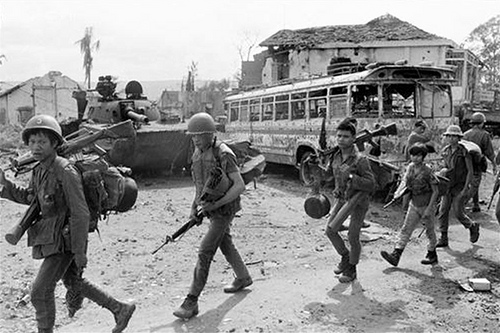 Đoàn quân CS vượt sông Gianh, Bến-Hải, xuyên Trường Sơn qua biên-giới. Ngày đêm ì-ạch khuân vác chiến-cụ ngoại-bang vào Nam. Người anh em chỉ nhằm mục-đích “giải-phóng” san bằng tự-do thanh-bình của người dân Nam để cùng nghèo đói gông cùm miền Bắc, trong giáo-điều bạo-tàn nô-dịch dân-tộc. Chắc chị cũng đã nghĩ như tôi, chắc chị đã không đau vì vết thương trên da thịt mà đã ray rứt về nỗi tủi hờn của một kẻ yếu đuối nữ-nhi, tay không cầm súng, không quen phong-trần cùng với gió sương. Chắc chị đã tiếc mình là nhi-nữ, không là Triệu-Ẩu, Trưng-Vưong, để phải lắm phen quay quắc trong hãi-hùng. Từ toà Hành-Chánh hay ga xe lửa, khu Kito hay trường học – chị lang-thang không nhà trốn giặc, trốn đạn khắp thành-phố bị bao vây nhiều ngày này và chị đã đến đây. Chị đã thấy gì hơn những nơi khác? Củng đổ nát điêu-tàn, cũng pháo rơi đạn nổ vung vãi khắp phố xá nhà cửa của dân lành. Địch nhằm mục-đích gây khủng-hoảng tinh-thần chúng tôi để chờ thời-cơ tiến đánh, nên đã ngày đêm không tiếc đạn bắn phá chúng tôi. Nhưng chị cũng thấy đó, chúng tôi vẫn thảnh-thơi vui cười – chờ địch đến như chờ cuộc chơi. Và với không khí lạc-quan đó đã khiến cho chị cảm thấy dễ chịu bình-yên hơn, tin tưởng hơn – dù một chút tin-tưởng đến muộn nhưng đã giúp chị thoát khỏi sự ám ảnh nào đó của âu lo…khi nghĩ đến cảnh phải ngồi co-ro ở một xó-xỉnh nào đó mà quyền làm người của chị lệ-thuộc vào họng súng AK, liệu chị có còn dám ngước mắt nhìn thẳng mặt họ mà vui cười như nhìn chúng tôi hay không? Hay chỉ biết cúi mặt chờ đợi – Những đầu ngón chân đen đúa đường xa của bọn chúng, chị sẽ nhìn thấy ở đó, một phần nào số phận của mình sẽ được định-đoạt. Chị sẽ bị mang ra bắn bỏ hay chôn sống. Có thể họ sẽ tha cho chị tội chết nhưng sẽ bắt chị phải đền tội sống. Tội làm người ở đãt nước tự-do, tội làm một cô giáo tỉnh lẻ hay viên-chức phụ-động ngày hai buổi đi về không biết hoan-hô, đả đảo…Chị sẽ được giáo-dục lao-động là vinh-quang làm theo sức trâu bò quên ngày, quên đêm là tiên tiến, là mũi nhọn công đầu…Chân chị sẽ chẳng còn guốc hồng dép trắng – chẳng còn nuột-nà gót sen và đôi tay của chị trau chuốt một thời sẽ nhăn-nheo héo úa bởi bùn đen đãt đỏ, bởi gai đâm vết cắt…tâm-hồn chị sẽ chai lì trong ê-chề buồn thảm để đến lúc chẳng còn biết mình là ai. Năm qua tháng lại chị sẽ trở thành một tên nô-lệ chuyên-nghiệp của chiến-trường xuôi Bắc ngược Nam, quên cha quên mẹ, quên cả người tình…Ngày ngày vác sắn,tải đạn, khiêng thương binh, chôn xác quân thù. Đêm về ngồi xếp bằng vỗ tay ca hát như lũ con nít vừa mới lên năm. Cuộc đời rồi cũng tàn-tạ rơi-rụng như chiếc lá úa trên rừng…Gương Mậu-Thân ngày nào ở Huế, chắc chẳng mấy ai quên…