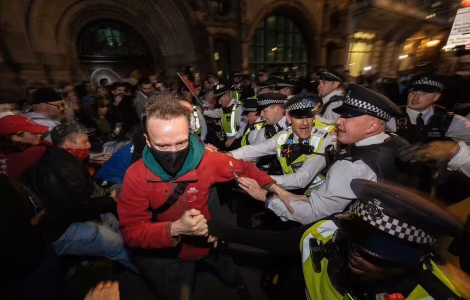 Officers were forced to wade into the crowds when activists refused to comply with the restrictions imposed on their protest.
