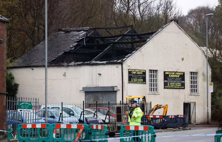 Pictures from the aftermath of the fire show the burnt out and partially collapsed roof of Mellor Street Garage.