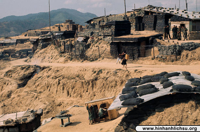Các công sự và các nơi cư ngụ của binh sĩ đều được xây dựng trên đồi núi xung quanh sân bay, năm 1971.