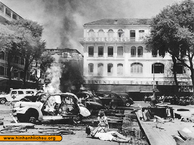 Việt Minh nổ bom trước Nhà hát Sài Gòn và trước Dinh Xã Tây (3 ảnh phía trái).