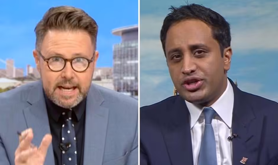 BBC Breakfast presenter Jon Kay and Reform’s head of policy Zia Yusuf (Image: BBC)